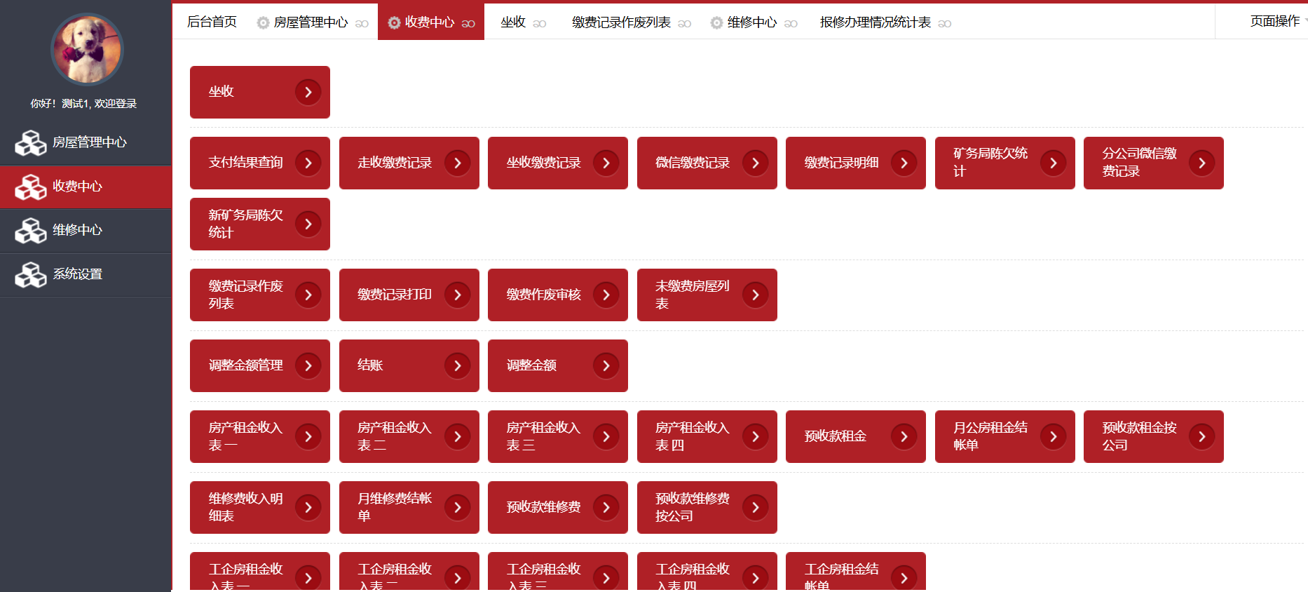房產(chǎn)基礎信息、在線繳費、房屋坐收繳費、走收收費、房屋費項管理、房屋維修中心管理等。