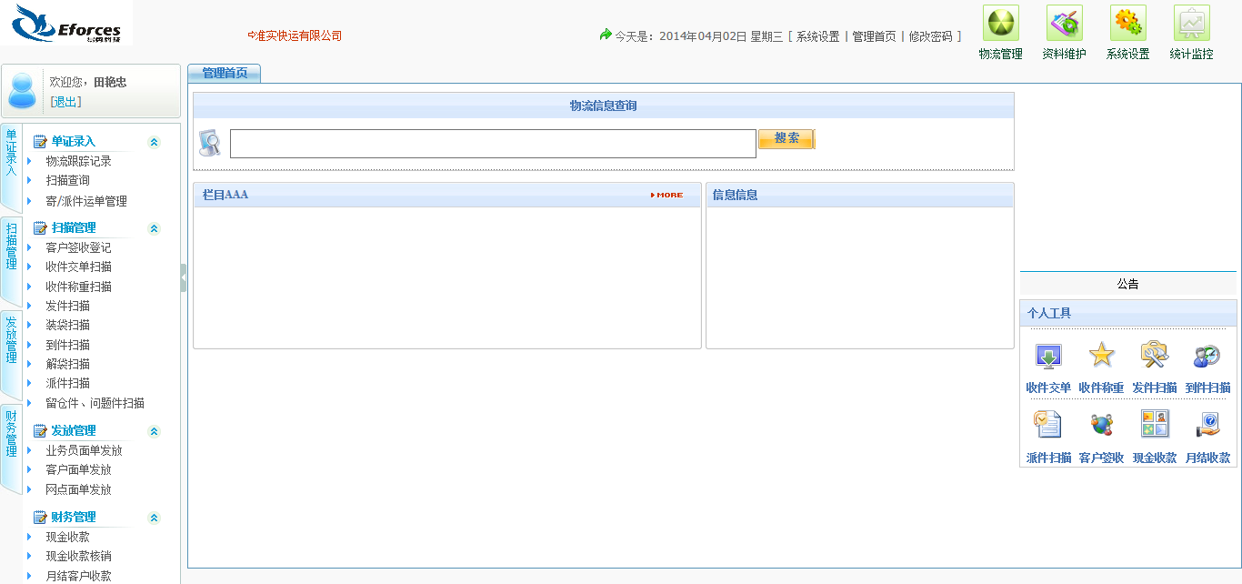 2013年,我們?yōu)闇?zhǔn)時快運(yùn)有限公司量身開發(fā)了一套物流信息管理系統(tǒng)。下圖為軟件頁面截圖。